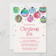 Esta tarjeta de invitación para fiestas es perfecta para un evento festivo. El diseño acuático presenta navidades coloridos y baubles con confetti rojo verde y azul.