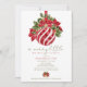 Esta clásica invitación a la ducha de novias para Navidades vacacionales cuenta con un brillante adorno de vidrio rojo con un arco/cinta roja y azulejos. El reverso presenta un fondo rojo con motivos de vacaciones Navidades. Personalízalo para tus necesidades. Puedes encontrar productos coincidentes en mi tienda.
