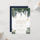 Invitación Navidades de oro azul verde ramas de pino purpurin