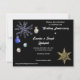 Invitación de moda Negra y Oro con decoraciones de seda roja de Navidad y un número único de purpurina de oro.