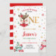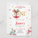 Navidades de renos Invitación de ciervos rojos de invierno de primer cumpleaños