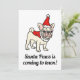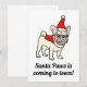 Esta tarjeta de saludo incluye un ilustracion de un bonito Bulldog francés que lleva un sombrero y un atuendo de Papá Noel.