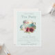 Invitación Navidades de té con flores de oro verde azulado Fi