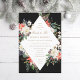 Flores acuáticas de temática navideña en blanco y rojo con rosas blancas, bayas rojas, bayas de enebro y poinsettias alrededor de la forma del diamante; el color del diamante y del fondo son editables.