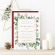 La invitación a la boda Navidad incluye bayas pintadas de color rojo, ramas de pino, eucalipto, hojas verdes y un marco rectangular de oro falso con un fondo rojo en la parte posterior. Para una personalización más avanzada de este diseño, haga clic en el enlace "Personalizar más adelante". También están disponibles los elementos coincidentes.