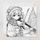 Tarjeta de coloración temática para navidades. chica de anime festivo bonito tocando la viola frente a un árbol de Navidad decorado.