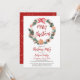 Prepárate para celebrar las vacaciones con estilo con esta encantadora invitación a la fiesta de los Navidades con una corona de acuarela pintada a mano adornada con flores festivas y vegetación. El mensaje "Feliz Navidad" se destaca en una bella tipografía, y los detalles del fiesta son personalizable para encajar en tu evento especial. Con un fondo rojo clásico y nieve al revés, esta invitación le agrega calidez y alegría a su reunión de vacaciones. ¡Ideal para celebraciones familiares o para fiestas!
