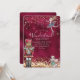 Esta encantadora invitación para fiestas de vacaciones incluye un tema de Nutcracker Winter Wonderland. El fondo es de color burdeos, con luces brillantes y copos de nieve. Una adorable bailarina Reina de la Nieve o Fada de la Pluma de Azúcar aparece en la parte superior derecha con el Nutcracker en la parte inferior izquierda y el Rey del Ratón en la parte inferior derecha. Es un diseño festivo y caprichoso, perfecto para cualquier Navidad o fiesta de vacaciones, cumpleaños u otra celebración.