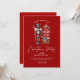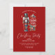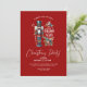 "¡Saludos cálidos para una deliciosa temporada de Navidades! Únete a nosotros para un mágico fiesta de temática Navidad, adornado con un encantador petardo y dulce bastón de caramelo. Celebremos con elegante tipografía roja en un tranquilo fondo rojo de vacaciones.