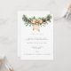 Esta elegante tarjeta de invitación a la fiesta de compromiso floral y ornamental para Navidades de invierno cuenta con un fondo blanco sencillo, flores y follaje de color de agua festiva, baubles de oro de Navidad y una elegante plantilla de boda que es fácil de personalizar.