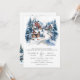 Aprovecha tus invitados con esta invitación en una boda temática de invierno con hermosas cabinas y pinos con código QR para RSVP en línea. Simplemente agregue los detalles de su evento en esta plantilla fácil de usar para convertirla en una invitación única.