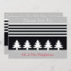 Decorativo, moderno y atrevido diseño de rayas blancas y negras con motivos a la antigua invitan con áreas tipográficas en el frente y en la parte posterior para el estilo de evento, hora y fecha, y ubicación de la dirección.