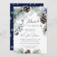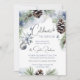 Navidades fiesta celebran la temporada acuarela de pinos nevados con pinos de pino de plata baubles copos de nieve plantilla editable invitación de descarga instantánea.