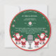 En esta invitación se mezclan elementos retro y festivos, perfectos para celebrar las vacaciones. El diseño muestra un ilustracion de unos cuantos Papá Noel cantantes, reunidos alrededor de un micrófono retro contra un fondo verde, con unos cuantos copos de nieve. La característica destacada es la forma circular única de la invitación, que se asemeja a un disco de vinilo clásico, que combina con el tema de la música y la nostalgia. Una manera perfecta de invitar a los huéspedes a unas divertidas vacaciones de canto, junto con un elegante giro de retroceso.