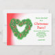 Invitación a la fiesta de los Navidades con mi diseño digital de una corona en forma de corazón decorada con latas de dulces, cintas, campanas y pinecones.