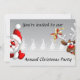 Un fiesta Navidad con un personalizado Santa y un reno, en un fondo gris con árboles de Navidad blancos.