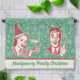 ¡Tira a un fiesta retro Navidades con estas invitaciones súper entusiastas de aspecto vintage! Tienen un color rojo/verde sobre todo en un fondo crema vintage. El texto dice: "¡Te invitan a un Holly Jolly Jamboree!" La dama y el caballero de los años 50 están vestidos con un sombrero de Santa y corderos de renos y llevan una copa de martini y una botella de champán. El diseño también incluye reno personalizado, muñeco de nieve, pan de jengibre, hojas huecas y dulces, así como íconos de copos de nieve, estrellas, un adorno y una caja de regalo. La parte posterior tiene un patrón de copo de nieve en rojo (también se puede cambiar el color rojo del "fondo" en la parte posterior a cualquier sombra en la herramienta de diseño). Traerá a sus huéspedes de vuelta a una época en la que los fiestas se llenaron con estas vacaciones modernas de mediados de siglo. ¡Tu fiesta será cualquier cosa menos squaresville! Utilice las plantillas fáciles para personalizar de estas invitaciones humorísticas. "más Personalizar" si necesita ajustar el tamaño del texto. La palabra "NAVIDADES" es un elemento de diseño, pero también puede moverse por separado o eliminarse en la herramienta de diseño. Póngase en contacto con HaHaHolidays si desea cambiar "Holly Jolly Jamboree."