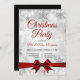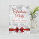 Invitación Navidades Fiesta Silver Winter Sparkle Red Ribbon