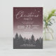 Sencilla invitación de los Navidades con noche estrellada roja y árboles de silueta gris en el fondo. Elegante tipo de letra de guión que dice "Fiesta de Navidades". ¡Esto puede ser personalizado para cualquier casa o fiesta de trabajo!