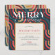Esta invitación retro, maximalista, kitsch y moderna a la fiesta de Navidades "Feliz Navidad" presenta un fondo verde azulado con patrones geométricos. El reverso presenta un fondo dorado falso con motivos geométricos. Personalízalo para tus necesidades. Puedes encontrar productos coincidentes en mi tienda.