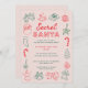 Esta divertida invitación para fiestas de vacaciones incluye extravagantes ilustraciones de Navidades hechos a mano en rojo y verde oscuro sobre un fondo rosa claro. El saludo moderno de tipografía dice "Santa Secreta". Personalizar este diseño añadiendo una foto y/o texto adicional al fondo. El aspecto es divertido, moderno y festivo. CONSEJO DE DISEÑO: los colores de fondo y texto son personalizables mediante la herramienta de edición.