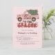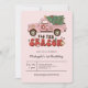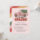 ¡Esta es la temporada para ponerse groovy! Esta retro invitación a la fiesta de cumpleaños incluye una camioneta color agua rosa con un árbol de Navidad y divertidas flores y estrellas retro de los años 70. La parte trasera tiene un patrón colorido de ondas retro en colores Navidades mudos. Es la manera perfecta de invitar a su familia y amigos a una divertida fiesta de cumpleaños de Navidades.