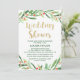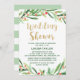 Esta tarjeta de invitación a la boda de navidades con corona de flores es perfecta para una ducha nupcial de invierno. El diseño incluye una corona de flores de color verde acuático con bayas rojas y un elegante tipo de letra purpurina de color oro falso. Nota: Este diseño no tiene purpurina de oro real. Es un gráfico de alta calidad hecho para parecerse a un brillo dorado brillante.