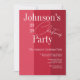 Este es un diseño moderno, elegante y de diseño de invitaciones de fiesta para Navidades. Es en rojo festivo y blanco con un diseño de escritura de rayas modernas y tipografía. Tiene el mensaje, "Fiesta de Navidades de Johnson" y espacio para que añadas tu nombre y año de celebración. Debajo hay espacio para que añadas los detalles de tu fiesta, incluyendo la ubicación, hora e información de RSVP. En la parte de atrás, el principal motivo de la tipografía, se repite con el mensaje "¡Celebremos!". Para personalizar, simplemente agregue su nombre e información del fiesta, usando el botón personalizar, aquí también puede cambiar el resto del texto si lo desea. Compruebe la herramienta de edición de diseño para cambiar el color o el tipo de letra. Si necesitas ayuda con la personalización, productos coincidentes o para un diseño personalizado, contacta conmigo a través de zazzle chat o email: ursuladawnmoon@gmail.com ¡Feliz Navidad!