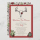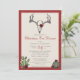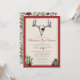 Esta elegante invitación a la cena Navidad incluye ilustraciones con tintas negras inspirados en el Día de las Fiestas Occidentales, con un cráneo de renos adornado con rosas rojas y plantas de cactus. La parte posterior presenta un bonito patrón con estos mismos elementos en un elegante fondo crema.