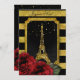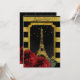 Invitación Navidades Paris Rosa Eiffel Tower Gold Stripe