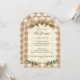 Invitación Navidades Pine Cones Branches Brown Gingham Arch