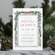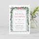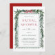 Esta elegante invitación a la ducha de matrimonio incluye un guiso de pino de Navidad acuático con un bonito arco de cinta roja.