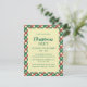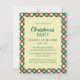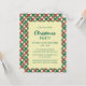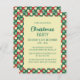 Esta tarjeta de invitación de grupo de Navidades presenta un texto de tipo de letra retro verde sobre un marco de color crema contra el fondo de patrón de pieza de rompecabezas de color de Navidades. Personalízalos añadiendo tu información. Perfecto para fiestas corporativos, de oficina y de casa.