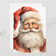 Una invitación a la fiesta de los Navidades con un ilustracion de estilo retro. Santa Claus con una barba blanca y espesa vistiendo su traje rojo tradicional. El texto de la invitación está en el reverso de la tarjeta.