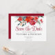 La invitación Save the Date de esta maravillosa festividad incluye una hermosa acuarela de flores rojas de poinsettia y hojas de pino para Navidades. Una elegante invitación de invierno con una fiesta de vuelta roja para las vacaciones. Personalice la parte posterior de esta tarjeta floral de poinsettia con las iniciales del monograma de la pareja.