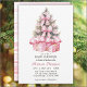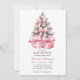 Navidades rosados Gift(s) Baby Shower - perfecto para chicas gemelos! con un bonito árbol de Navidad y dos regalos adornados con flores y arcos rosados.