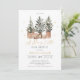 Esta invitación se caracteriza por las acuarelas de los árboles navideños en tonos suaves y rústicos de color verde, adornados con azulejos de color marrón y beige natural. El diseño minimalista, con un fondo cálido y neutro, evoca un ambiente Navidad acogedor inspirado en la naturaleza, perfecto para celebrar la llegada inminente de un recién nacido.