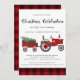 Rústicos Navidades Fiesta Country Buffalo Plaid - Invitation incluye un tractor rojo vintage que jaló un remolque lleno de un pino recién cortado y un regalo de Navidades. La invitación también presenta tipografía manuscrita y está recortada en trenzas de búfalo rojo. Nuestra plantilla de alta calidad hace que sea tan fácil para usted personalizar su invitación de fiesta de vacaciones. Todo el texto es editable. La invitación forma parte de una colección. Diseñado por Beverly Bainbridge Magnolia & Thistle E: bev@magnoliaandthistle.design