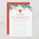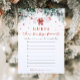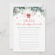Los Navidades Red Santa Baby Clothes Adivinan El juego de la Comida Infantil trae diversión festiva a su ducha de bebé con temática navideña. Con un diseño bonito con ropas de bebé de Santa María, delicados copos de nieve rojas y toques de eucalipto de verdor invernal, este juego desafía a los clientes a adivinar diferentes sabores de comida para bebés basados en la apariencia, el olfato o el gusto. Se trata de una actividad lúdica que capta el ambiente festivo y añade un elemento alegre e interactivo a su celebración, ya que los invitados compiten por identificar correctamente cada sabor. Perfecto para hacer recuerdos y risas mientras celebras la llegada de tu pequeño.