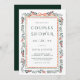 Esta elegante invitación a la ducha de parejas cuenta con un marco de invierno con Navidades de acuarela acentuado por un bonito arco de cinta roja.