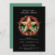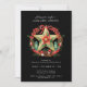 ¡Feliz solsticio! Celebra la noche más larga del año con esta hermosa tarjeta de solsticio de invierno Holiday Pagan Yule para Navidades. Esta corona de pentagramas color agua está llena de hongos, bellotas, puntos verdes de columna fluorita, bayas rojas, campanas, plumas y vegetación, coronada por un arco rojo. Texto listo para el personalizar con su nombre y dirección y detalles del fiesta.