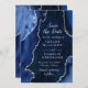 Invitación Navy Blue and Silver Agate Marble Save The Date