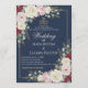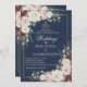 Invitación Navy Blue Blush Burgundy Floral Gold Frame Wedding