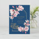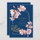 Invitación Navy Blue Blush Pink Magnolia Floral Save the Date