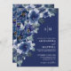 Invitación Navy Blue Dark Elegant Boda floral moderno
