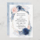 Invitación Navy Blue Floral Dusty Budget QR Code Wedding