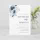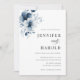 Invitación Navy Blue Floral Minimal Plain All in One Wedding