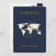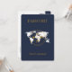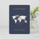 Invitación Navy Blue Gold Passport Boda de destino QR