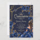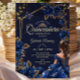 Invitación Navy Blue Golden Tiara Roses Quinceañera
