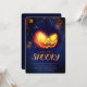 Diablos de naranja azul marino y dorado espeluznante calabaza graciosa con gradiente azul marino abstracto y cintas de halloween y estrellas invitación de halloween para adultos.